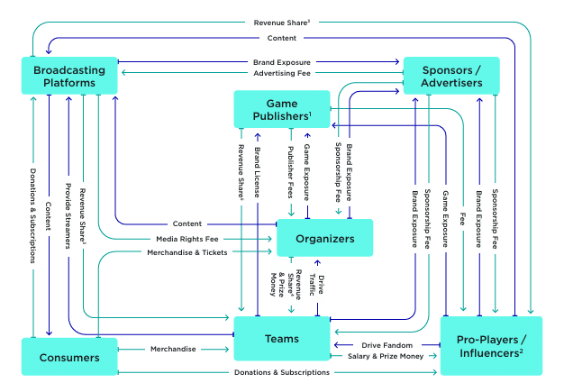 Néanmoins, la plupart des acteurs sont loin d’être rentables. Une industrie naissante a besoin de temps pour se stabiliser et mettre au point des modèles économiques pertinents, d’autant plus que les contenus gratuits restent présents. Une telle caractéristique implique de repenser les modèles traditionnels des secteurs originaux du sport et des jeux vidéo afin de trouver des sources de revenus innovantes. Deuxièmement, la professionnalisation d’une activité implique de concilier des objectifs parfois contradictoires entre les acteurs de la chaîne de valeur. Elle ne renforce pas nécessairement la capacité à coordonner et à définir un cadre commun.