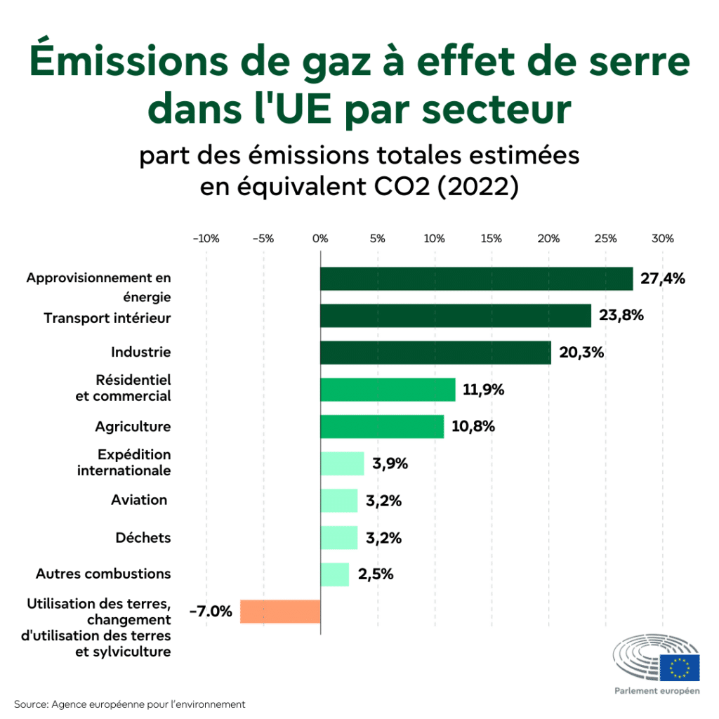 Répartition sectorielle des émissions de GES en France et dans l’UE