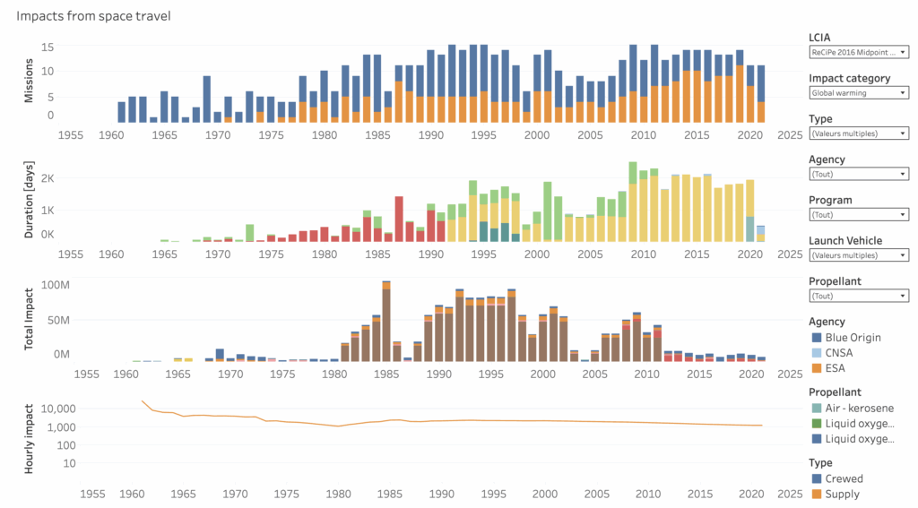 Jürgen Knödlseder. Face au développement des vols spatiaux commerciaux, Carbajales-Dale et Murphy ont calculé l’empreinte carbone des vols spatiaux habités1. Sur l’ensemble du cycle de vie, ils estiment que le coût climatique s’élève à 1500 kg de CO2 équivalent par heure. Soit l’équivalent horaire de 60 à 100 bus diesel qui rouleraient en même temps. Pour moi, le tourisme spatial n’est pas une priorité.